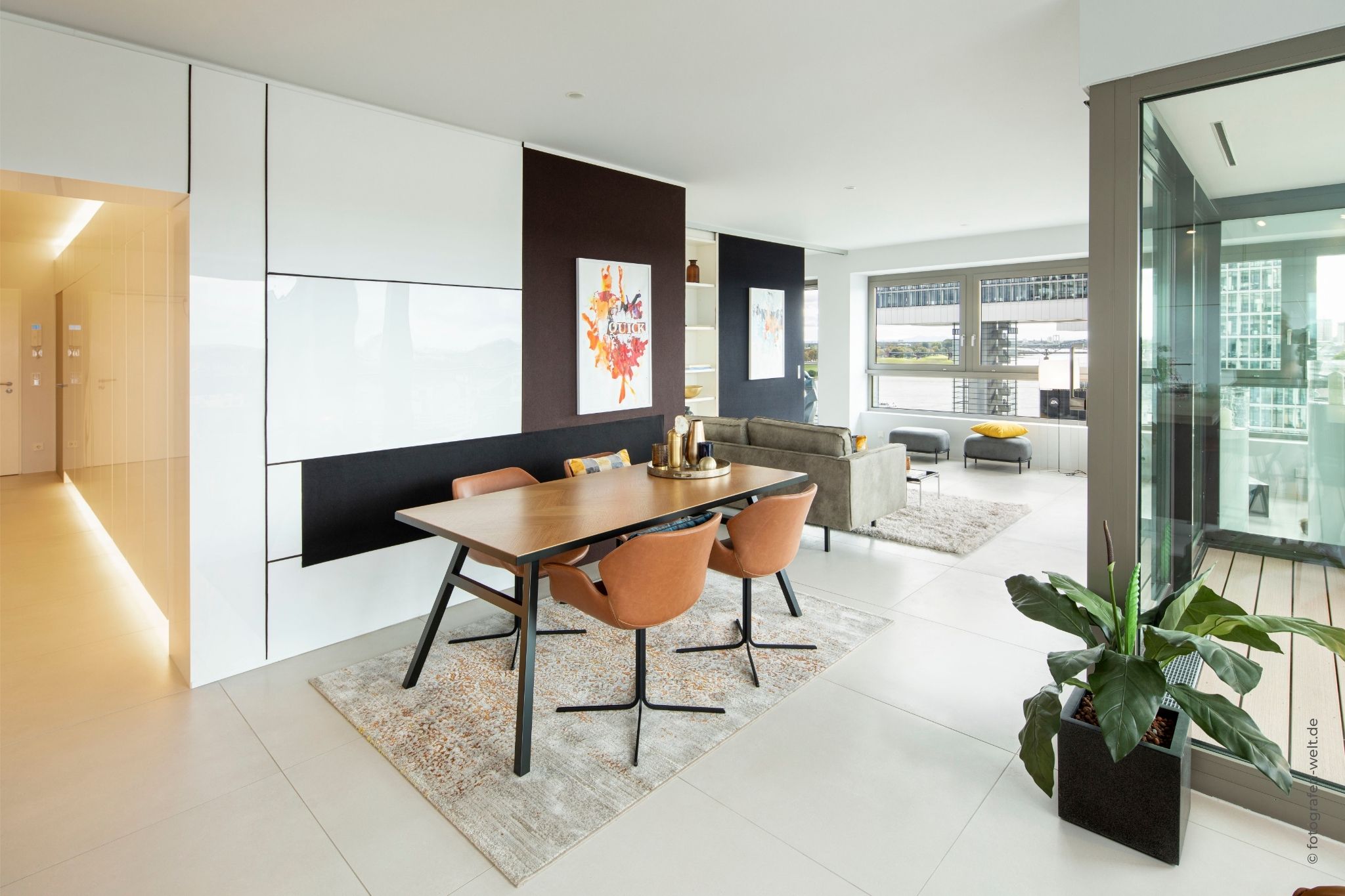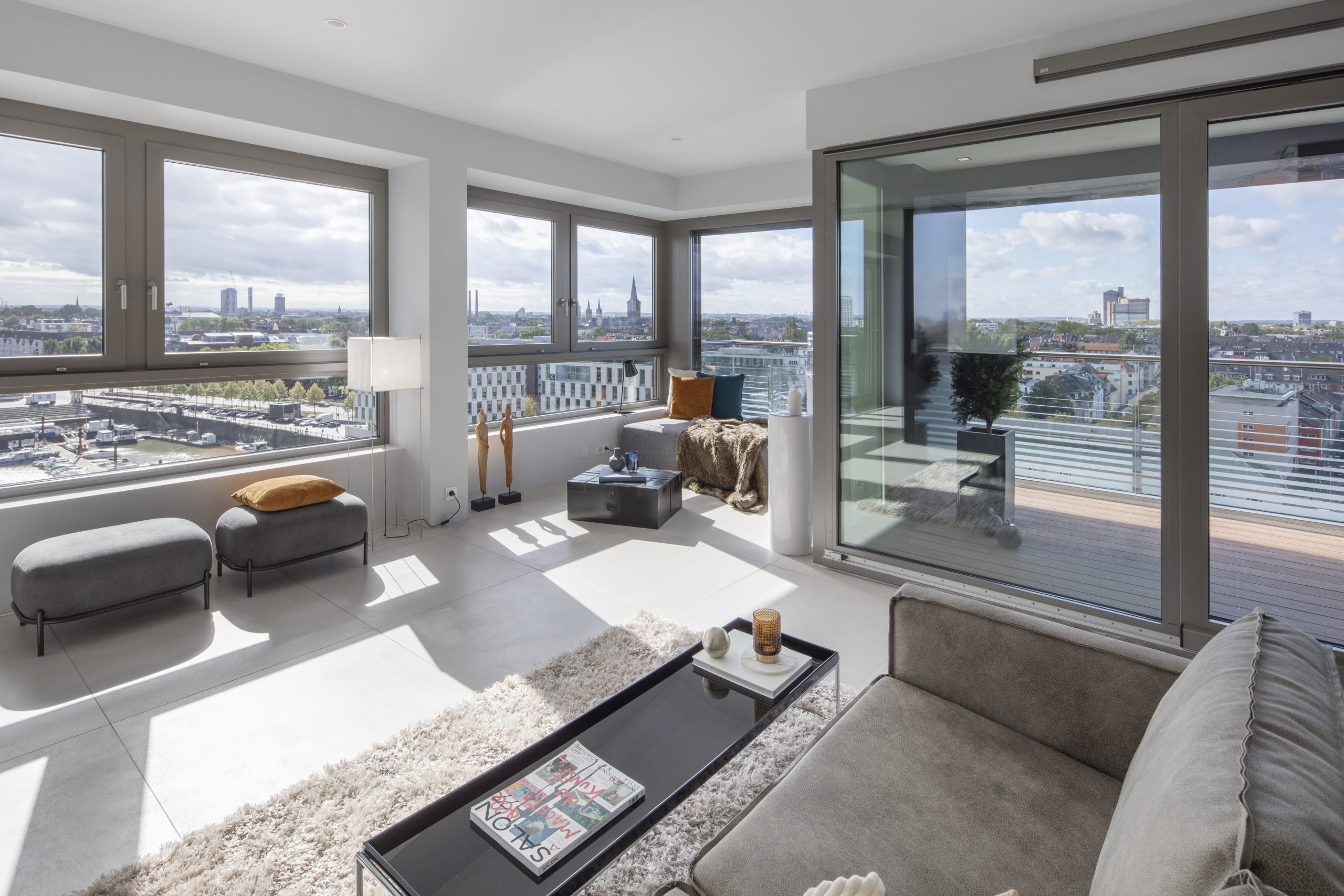 Die loftähnliche Wohnung im Kranhaus wird mit unserem Home Staging zur repäsentativen Residenz im prestigeträchtigen Rheinauhafen.